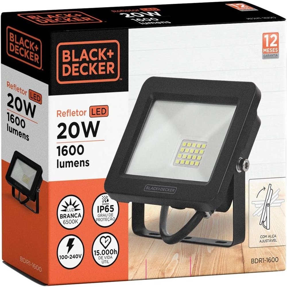 – 01Refletor Led Eco Branca 20W Bivolt Conector Cabo Black+Decker