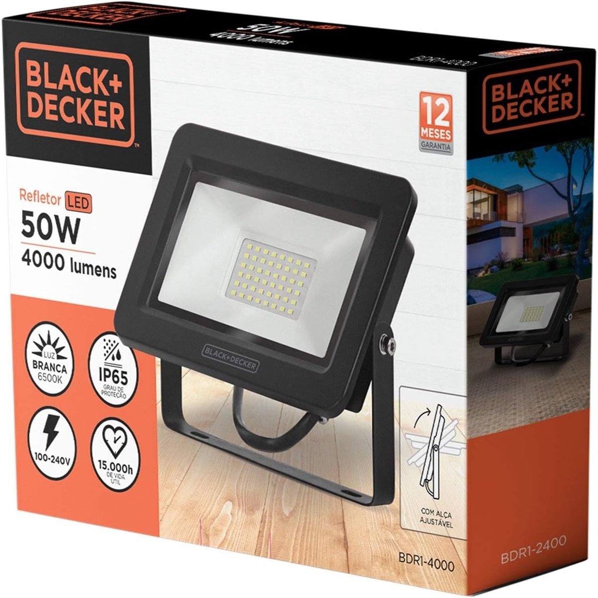 – 01 Refletor Led Eco Branca 50W Bivolt Conector Cabo Black+Decker